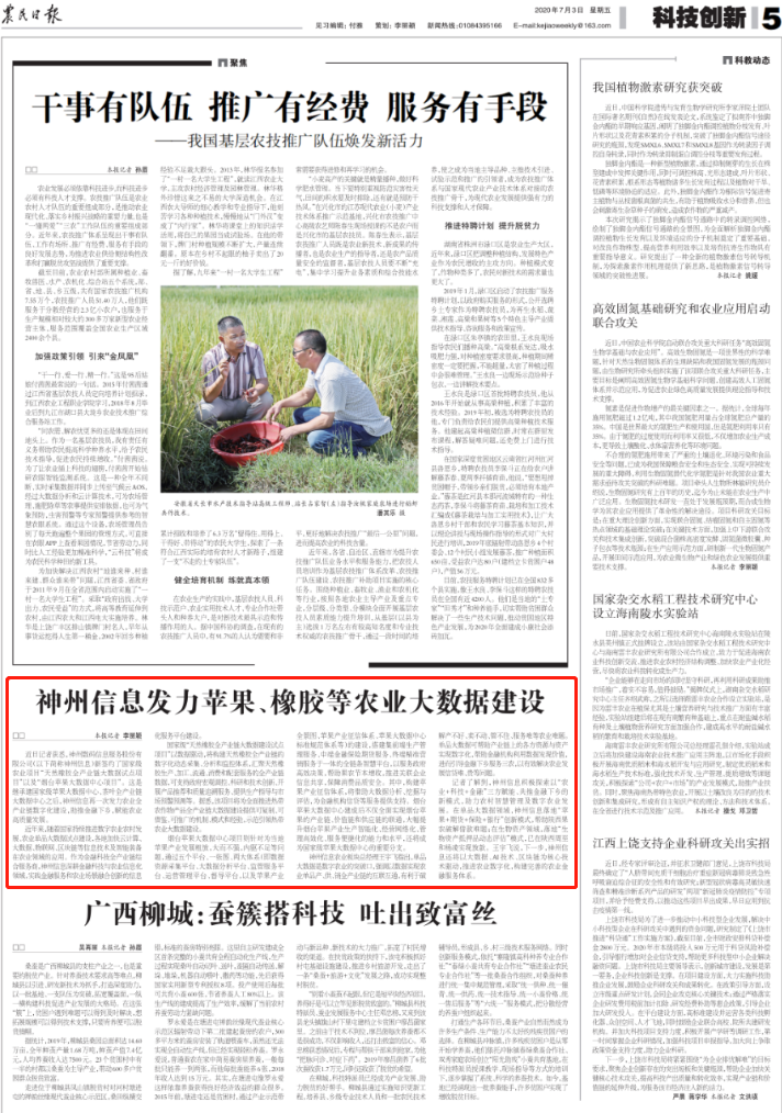 记者了解到,神州信息积极探索以“农业+科技+金融”三方赋能、共推金融下乡的新模式,助力农村智慧管理及数字农业发展。在单品大数据领域,神州信息落地“苹果+期货+保险+银行”创新模式,帮助陕西果农破解借款难题;在生物资产领域,落地“生物资产抵押品动态评估”模式,已在陕西周至和杨凌实现放款。王宇飞表示,下一步,神州信息还将以大数据、AI、区块链为核心技术驱动,推进农业数字化,构建完善的农业金融服务体系。
